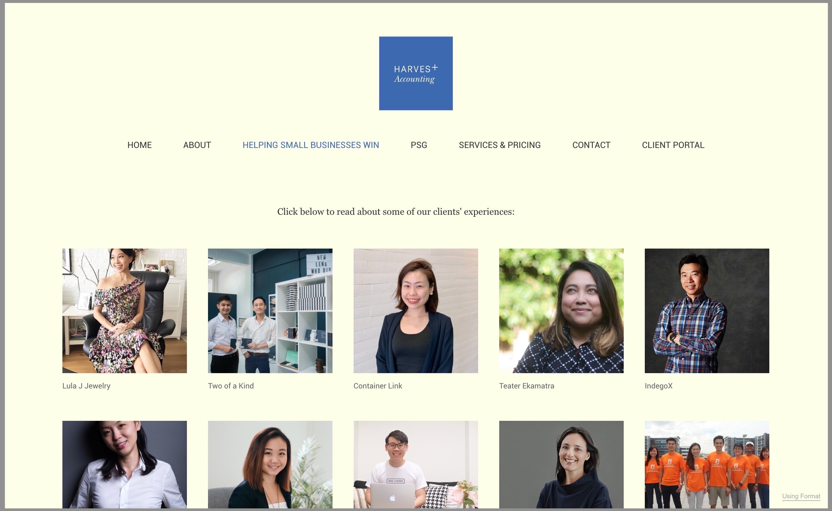 - Publishing the website - I ran into a bit of trouble trying to connect the new website to our existing domain harvestaccounting.com.sg, but our hosting provider exabytes was able troubleshoot the issue and make it work.